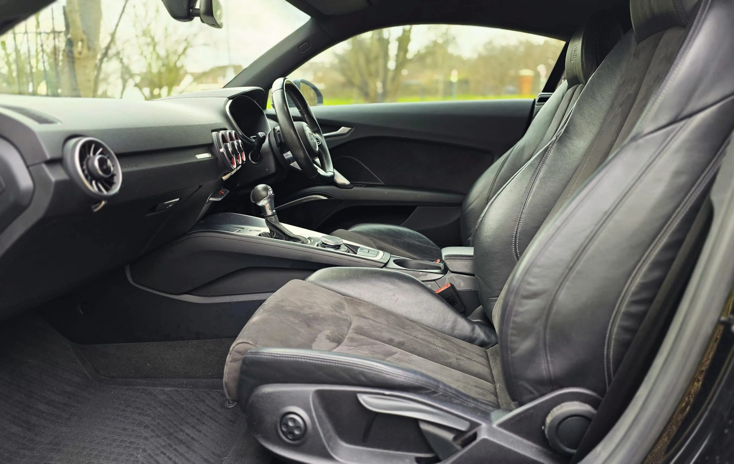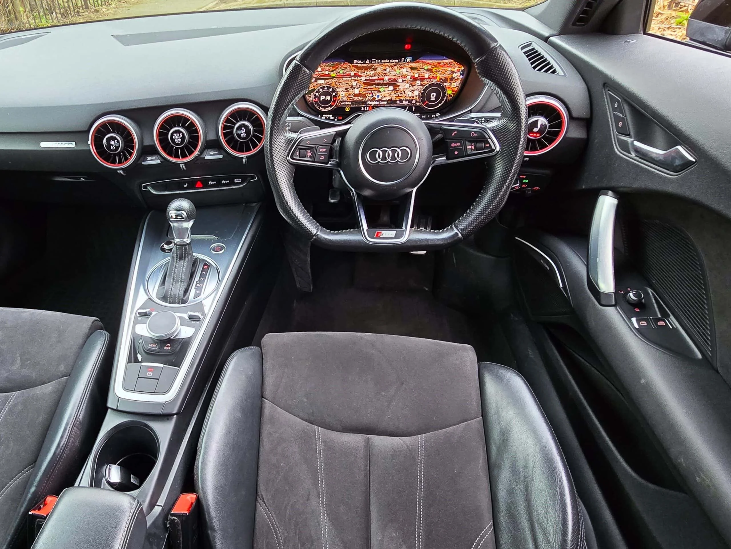 FINISHED IN STUNNING DIAMOND BLACK METALLIC WITH HALF LEATHER SPORTS INTERIOR + TTRS BODY STYLING + VIRTUAL COCKPIT + SATELITTE NAVIGATION SYSTEM + CLIMATE CONTROL + MEDIA PACK + 19 INCH GLOSS BLACK MULTISPOKE ALLOY WHEELS + PARKING SENSORS + MULTI FUNCTION STEERING WHEEL + CRUISE CONTROL + LED LIGHTS + HEATED FRONT AND REAR WINDSCREEN + HEATED SEATS + ELECTRIC WINDOWS + ELECTRIC MIRRORS + FRONT FOGS + MOT JULY 2025 + SUPERB LOOKS AND PERFORMANCE + ANY TRIAL/INSPECTION WELCOME + NO TIMEWASTERS/TEST PILOTS + A REAL HEAD TURNER +
