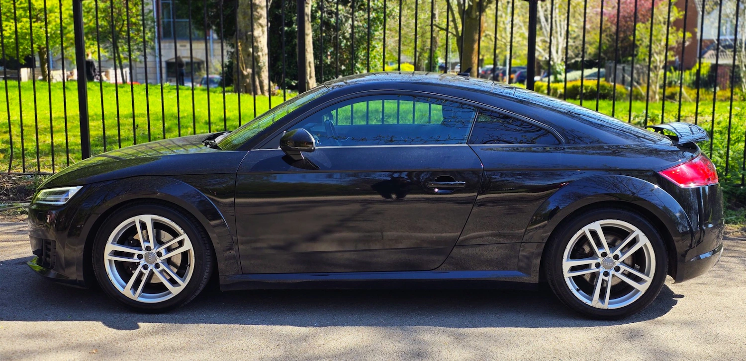 Full Service History, 2015 AUDI TT 2.0T FSI QUATTRO S LINE S TRONIC COUPE + FINISHED IN STUNNING DIAMOND BLACK METALLIC WITH HALF LEATHER SPORTS INTERIOR + VIRTUAL COCKPIT + TECHNOLOGY PACK + SATELITTE NAVIGATION SYSTEM + CLIMATE CONTROL + MEDIA PACK + 18 INCH TWIN 5 SPOKE ALLOY WHEELS + PARKING SENSORS + MULTI FUNCTION STEERING WHEEL + CRUISE CONTROL + PREMIUM SOUND + DAB RADIO + PARKING SENSORS + LED LIGHTS + HEATED FRONT AND REAR WINDSCREEN + HEATED SEATS + ELECTRIC WINDOWS + ELECTRIC MIRRORS + FRONT FOGS + SUPERB LOOKS AND PERFORMANCE + ANY TRIAL/INSPECTION WELCOME + 12 MONTHS MOT TO BE ADDED AT TIME OF SALE + NO TIMEWASTERS/TEST PILOTS + £10290 + Full Service History, HPI Clear, Excellent condition, S Line Badges on the Front Wings Part Leather Seats, Heated seats, Park distance control iPod Connection AUXIN Socket USB Connection DAB Digital Radio AMI Audi Music Interface Audi Virtual Cockpit 12.3in High Resolution LCD Display Air Conditioning All Weather LED Headlights AntiTheft Alarm Brake Lights LED Bumpers Front and Rear S Line Design Door Mirrors Electrically Adjustable and Heated, Door Sill Trims, Door Sill Trims with S Line Logo Door Trim Inserts Alcantara, Dynamic LED Indicators Rear ESP Electronic Stability Programme Electromechanical Parking Brake, Extended Aluminium Look in Interior FMAM Radio Front Passenger Airbag Deactivation Switch Front Sports Seats Gear Knob Perforated Leather Black Gear Knob Silver Stitching Head Restraints Front in Leather Headlights Automatic Dynamic Range Control Headlights Automatic Range Adjustment Headlights Light Sensor Mobile Telephone Preparation Bluetooth Interface Headlights Washers Headlining Black Inlays Matt Brushed Aluminium Integrated Head Restraints Keyless Go Light and Rain Sensor Package Pedals in Stainless Steel S Line Badge on the Steering Wheel S Line Body Styling Seat Side Bolsters in Leather Seats Alcantara Centre Section Seats Contrasting Silver Stitching on Upholstery Side Sills S Line Speakers x4 Front Passive SplitFolding Rear Seats Spoiler Retractable Steering Wheel Silver Contrast Stitching Steering Wheel Sports Sunband for Windscreen TP Memo Automatically Saves Traffic News Traction Control Tyre Pressure Loss Indicator airbags, ABS, PAS, Spare key, 18in Alloy Wheels 5Arm Star Design, ++ VIEWING BY APPOINTMENT ONLY ++ PLEASE ARRANGE A TIME BEFORE ARRIVING ++ PLEASE NOTE THAT DEPOSITS ARE NON REFUNDABLE ++ (Whilst every care is taken in providing an accurate description, errors may still occur. Please check details that are important to you before purchasing. Thank you.)