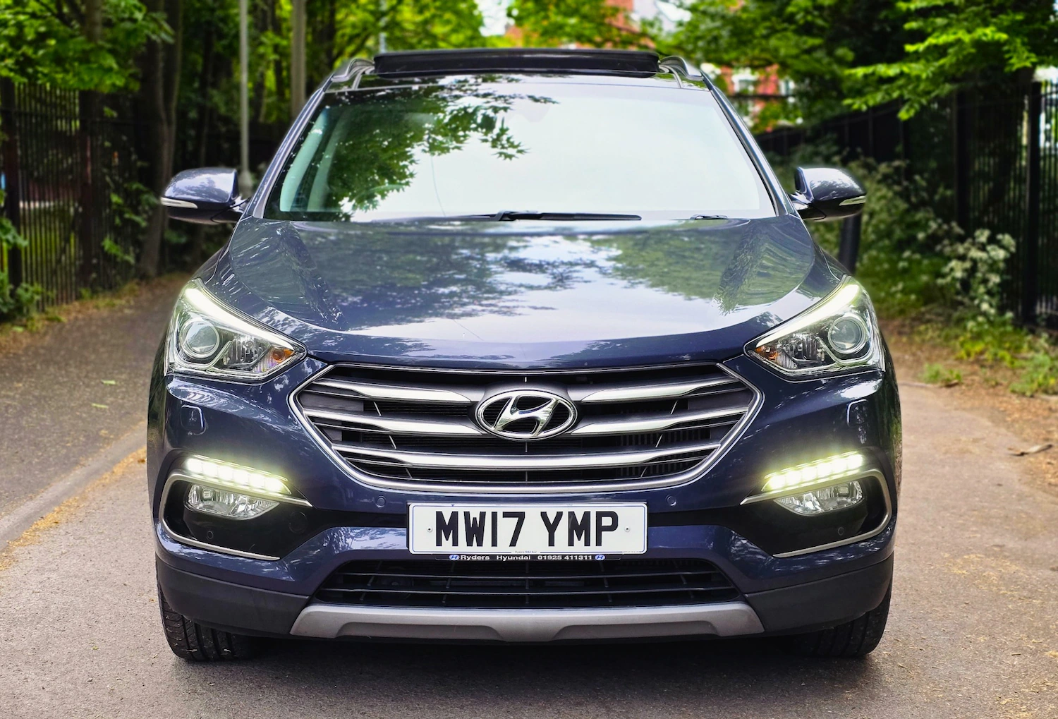 0 Previous Owners, Full Service History, 2017 HYUNDAI SANTA FE 2.2 CRDi PREMIUM SE (7 SEATER) 4WD MANUAL + SUPERB PRACTICAL AND ECONOMICAL FAMILY SUV FINISHED IN ATLANTIS BLUE METALLIC + FULL BLACK LEATHER INTERIOR + ELECTRIC PANORAMIC TILT AND SLIDE SUNROOF + 19 INCH TWIN 5 SPOKE ALLOY WHEELS + FRONT AND REAR PARKING SENSORS + NAVIGATION SYSTEM + MEDIA CONTROL UNIT + MULTIFUNCTION STEERING WHEEL + ELECTRIC HEATED FRONT SEATS AND HEATED REAR SEATS + REAR WINDOW BLINDS + PRIVACY GLASS + CLIMATE CONTROL + CRUISE CONTROL + LANE ASSIST + RUNNING BOARDS + LED HEADLIIGHTS + FRONT FOGS + 8 SERVICE STAMPS + MOT UNTI JAN 2026 + 1 OWNER FROM NEW + NATIONWIDE DELIVERY (please ask for a quote) ++ £10690 ++ Gps Satellite Navigation System With Touchscreen Display And Traffic Messaging Channel, 18 Inch Alloy Wheels, Dusk Sensing Automatic Headlights, Rain Sensing Windscreen Wipers, Bluetooth Wireless Smartphone Connectivity, Cruise Control With Speed Limiter, Electrically Adjustable, Folding And Heated Door Mirrors With Puddle Lights, 8Way Electrically Adjustable Drivers Seat, Dual Zone Climate Control, Front And Rear Electric Windows, Front And Rear Fog Lights, Heated Front Seats And Outer Rear Seats, Hill Start Assist, Luxurious Leather Upholstery, Led Daytime Running Lights With Brake Lights, Front And Rear Radar Type Parking Sensors, Premium Sound System, Privacy Glass, Rear Assist Camera, Black Roof Rails, Solar Glass With Windscreen Shade Band, Dab Digital Radio, Tyre Pressure Monitoring System, Auxiliary Input And Usb Port, Air Conditioning, Self Levelling Suspension, 3Rd Row Folding Seats, Date Of First Registration 31/5/17 Drive Into A Low Emissions Zone With This Euro 6, ULEZ & CAZ Compliant Car. (Whilst every care is taken in providing an accurate description of the vehicle, errors may still occur. Please check details that are important to you before purchasing. Thank you.), ++ VIEWING BY APPOINTMENT ONLY ++ PLEASE ARRANGE A TIME BEFORE ARRIVING ++ PLEASE NOTE THAT DEPOSITS ARE NON REFUNDABLE ++ (Whilst every care is taken in providing an accurate description, errors may still occur. Please check details that are important to you before purchasing. Thank you.)