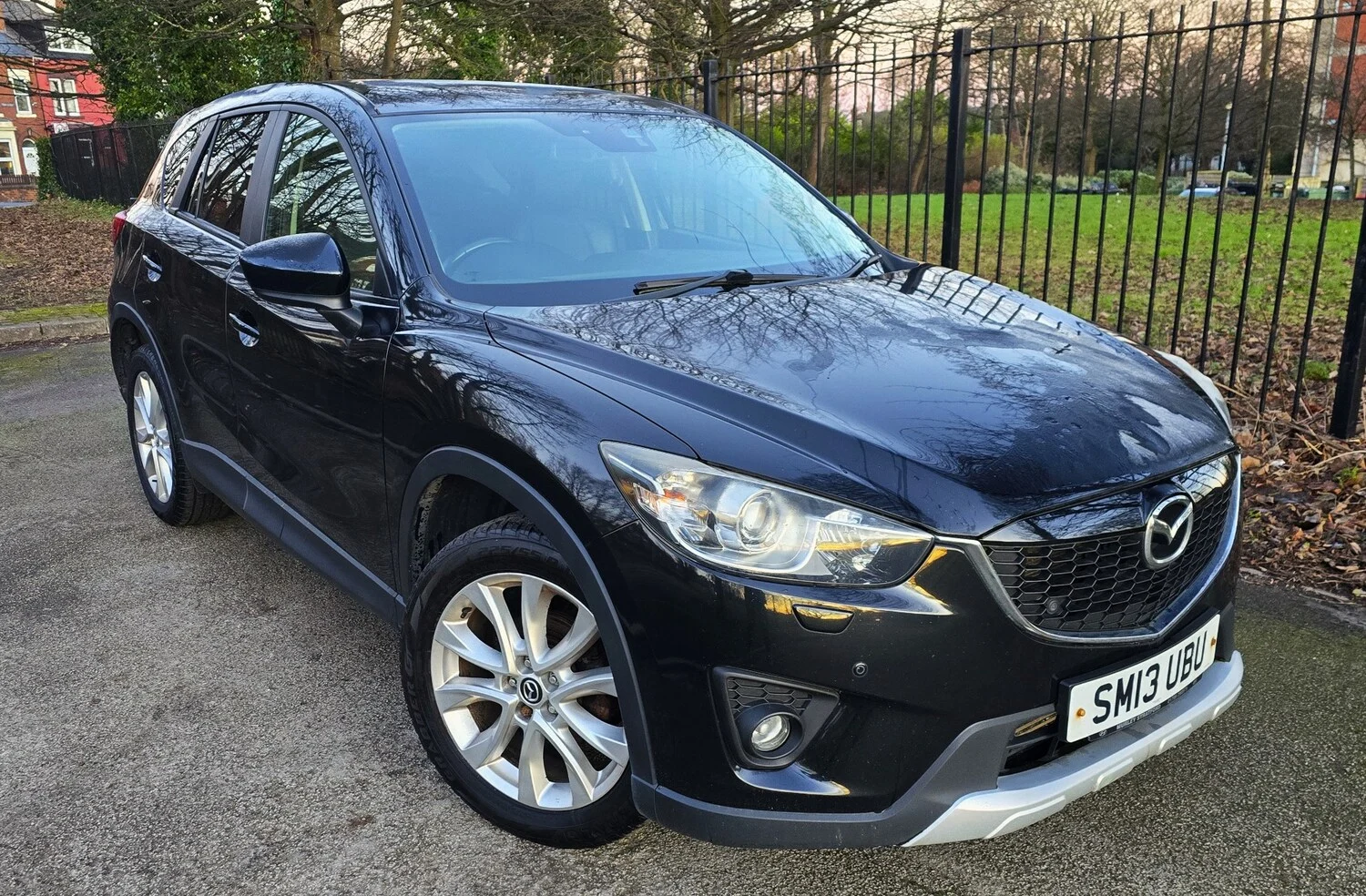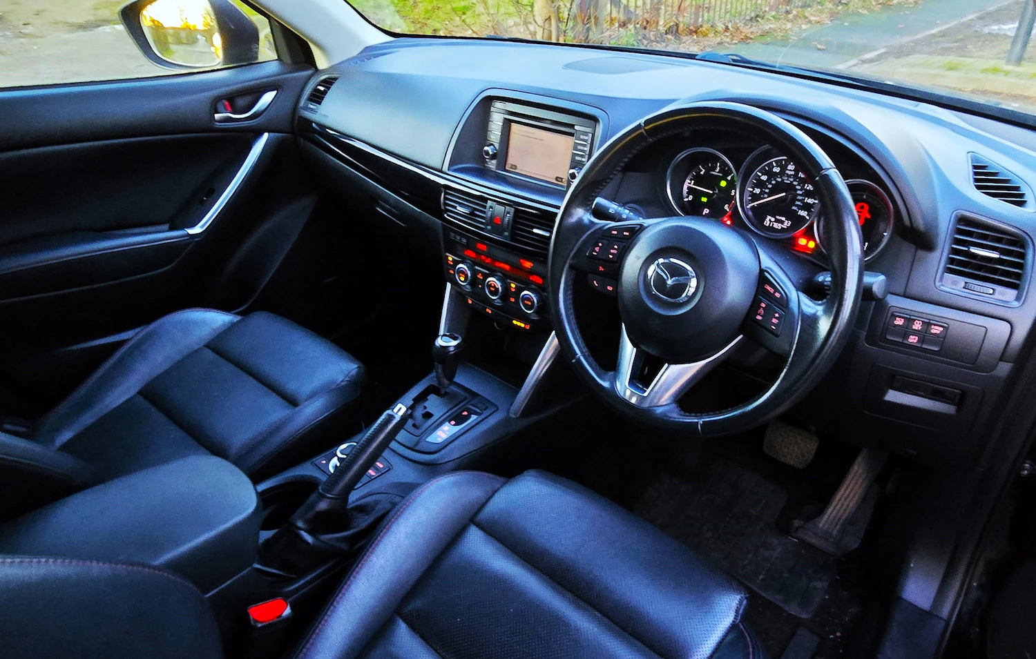Full Franchise Service History, 2013 13 REG MAZDA CX5 SPORT NAV AUTOMATIC STYLISH AND PRACTICAL SUV FINISHED IN DIAMOND METALLIC BLACK PAINTWORK + BEAUTIFUL CONTRASTING BLACK LEATHER INTERIOR WITH RED STITCHING + 129000 MILES WITH COMPREHENSIVE SERVICE HISTORY + BEAUTIFUL CONDITION THROUGHOUT + FOUR WHEEL DRIVE + 12 MONTHS MOT JUST ADDED INC NEW FRONT BRAKE DISCS AND PADS + 19 INCH ALLOYS + ELECTRIC HEATED MEMORY SEATS + ELECTRIC FOLDING MIRRORS + TOUCHSCREEN SAT NAV + REVERSING CAMERA + HEATED FRONT AND REAR WINDSCREENS + LANE ASSIST + CRUISE CONTROL + PRIVACY GLASS + MULTI FUNCTION STEERING WHEEL + HEATED SEATS + MULTIFUNCTION STEERING WHEEL + XENON HEADLIGHTS + MATRIX REAR LIGHTS + FRONT AND REAR PARKING SENSORS + ON BOARD COMPUTER + LUMBAR SUPPORT + ISOFIX + BLUETOOTH PHONE PREP + USB/AUX CONNECTION POINTS + CLIMATE CONTROL + HEATED MIRRORS + ELECTRONIC PARKING BRAKE + BEAUTIFUL CONDITION + FIRST TO SEE WILL BUY + NATIONWIDE DELIVERY AVAILABLE (ASK FOR A QUOTE) + 12 MONTHS MOT JUST PASSED + 3,6 OR 12 MONTHS WARRANTY AVAIALBLE + £6490++ Active lane keep assist, Antilock Brake System (ABS), Drive away door locking, Electronic Stability Program (ESP), LED 3rd brake light, Speed limiter, Tyre pressure monitor, Variable interval front wiper, Variable interval rear wiper, Bluetooth interface, OEM internet services, On Board Diagnostics, Remote vehicle diagnostics, Roof aerial, Automated Highbeam assist, Electric boot/tailgate, Digital Instrument Cluster, Keyless go, Multifunction steering wheel, Navigation system, Service interval indicator, Speed limit display, Steering wheel audio controls, All wheel drive automated, Comfort suspension, Hill hold, Power Assisted Steering, Rev counter, Selectable all wheel drive, Auxiliary input socket, Digital radio, Radio/CD, Touchscreen media control, Body coloured bumpers, Boot spoiler, Rear boot, Roof rails, Automatic headlight activation, Daytime running lights, LED headlights, Xenon headlights, Coat hook, Door sill protection, Rear armrest, Front head restraints, Rear interior 12V power outlet, Leather gear selector trim, Leather handbrake trim, Textile floor mats, Boot mat, Electric door mirrors, Heated door mirrors, Metallic Paint, Rear parking sensor, Rear park assist camera, Electric parking brake, Drivers airbag, Front side airbags, Manual child proof locks, Passenger airbag deactivation, Seatbelt pretensioners Rear, Seatbelt pretensioners Front, Comfort driver’s seat, Comfort front passenger seat, Alarm, Remote central locking, Leather seat upholstery, 19” Alloy wheels, Tyre repair kit, Privacy glass, Rain sensor, Rear electric windows, Rear wiper, Front electric windows, Windscreen shade band ++, ++ VIEWING BY APPOINTMENT ONLY ++ PLEASE ARRANGE A TIME BEFORE ARRIVING ++ PLEASE NOTE THAT DEPOSITS ARE NON REFUNDABLE ++ (Whilst every care is taken in providing an accurate description, errors may still occur. Please check details that are important to you before purchasing. Thank you.)