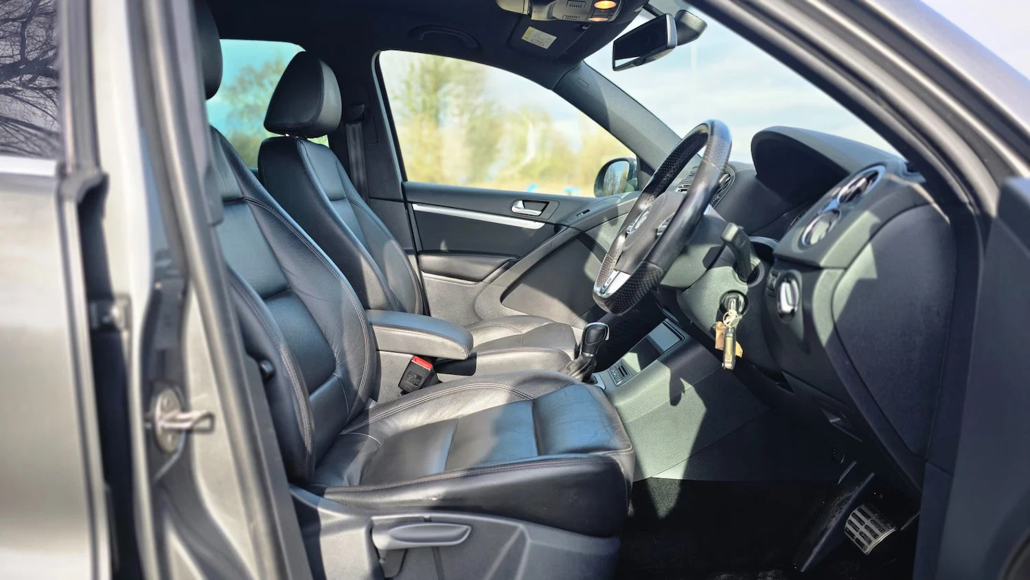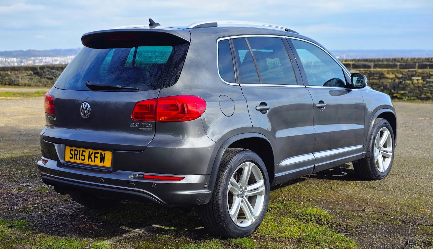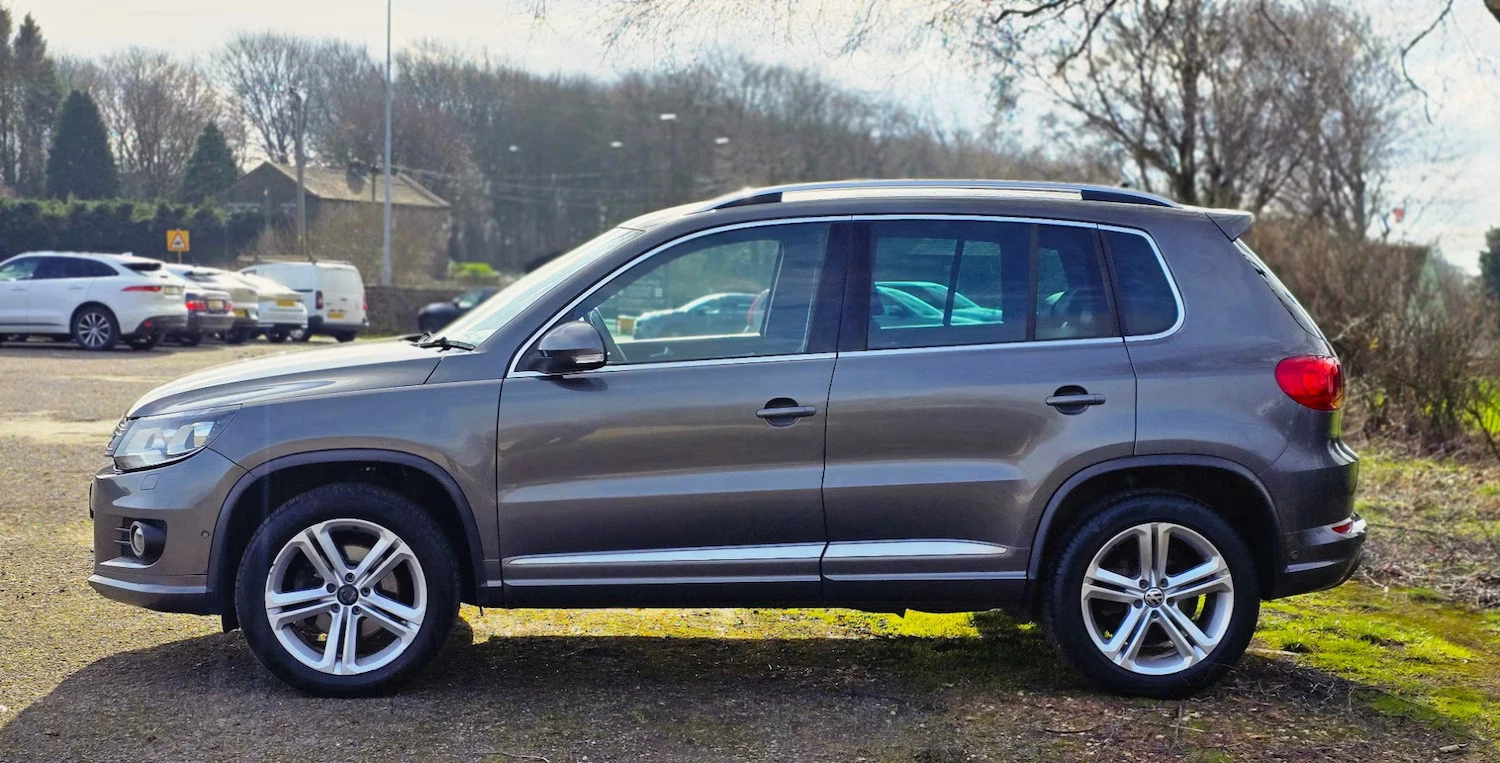 2015 VW TIGUAN 2.0 TDI BLUEMOTION TECH R LINE DSG FINISHED IN DOLPHIN GREY METALLIC + FULL BLACK LEATHER SPORTS INTERIOR + SAT NAV + ON BOARD COMPUTER + DAB RADIO + MEDIA + ELECTRIC FOLDING MIRRORS + FRONT FOGS HEATED FRONT AND REAR WINDSCREEN + HEATED SEATS + CLIMATE CONTROL + FRONT AND REAR PARKING SENSORS + BRUSHED SILVER ROOF RAILS + 18 INCH 5 SPOKE ALLOY WHEELS + 9 MAIN DEALER STAMPS + FSH + MOT UNTIL 20/12/2026 + 2 KEYS + ANY TRIAL/INSPECTION WELCOME + 3,6 AND 12 MONTH WARRANTIES AVAILABLE + NATIONWIDE DELIVERY (Please ask for a quote) + WE ARE FCA REGULATED AND CAN WORK WITH MOST FINANCE COMPANIES (Please have your finance in place before enquiring) ++ £9990 ++ (Whilst every care is taken in providing an accurate description, errors may still occur. Please check details that are important to you before buying. Thank you). 3 rear 3 point seatbelts, Curtain airbags, Driver/Front Passenger airbags, Driver/Passenger whiplash optimised head restraints, Front side airbags, Height adjustable front 3 point seatbelts + pretensioners, Passenger airbag deactivate switch, Seatbelt warning lamp and buzzer, Warning triangle, Alarm with interior protection, Electronic engine immobiliser, Remote central locking with 2 remote folding keys, Anti-lock Brake System + Electronic Brakeforce Distribution + Brake assist, Electronic parking brake with auto hold, Electronic stabilisation programme with electronic differential lock + traction control, Sports suspension, Automatic dimming rear view mirror/rain sensor, Body colour door mirrors with integral indicators, Electric heated + adjustable door mirrors, Front and rear electric windows, Green tinted heat insulating glass, Heat insulated tinted glass from B pillar back, Heated rear window, Rear windscreen washer and wiper with interval delay, Windscreen wipers/ intermittent wipe + 4 position delay, 18″””” front module, Body colour door handles, Body colour roof spoiler, Body coloured bumpers, Chrome roof rails, Chrome side window surrounds, Chrome trimmed front air intake surrounds, Solid paint, Automatic coming home lighting, Bi-xenon headlights/wash + dynamic cornering lights + LED daytime running lights, Cornering front fog lights, Dusk sensor + auto driving lights, 3 rear headrests, 60/40 split folding rear seat, Driver’s seat height adjustment, Driver’s seat with lumbar adjustment, Foldable front passenger seat backrest, Front seat back storage pockets, Front sports seats, Isofix Preparation 2 Rear child seats, Passenger seat height adjuster, Passenger seat lumbar adjustment, Sliding/reclining rear seats, ‘Anthracite-Metallic’ interior trim, Silver decorative inserts in door panels, Steel finish air vent surround, Front + rear carpet mats, Front footwell illumination, Front reading lights, Interior light with delay, Luggage compartment lighting, White adjustable panel illumination, Illuminated vanity mirrors, 12V socket in luggage compartment, 3 spoke multi-function leather steering wheel and gearknob, 5 boot load lashing points, Aluminium scuff plates, Drivers underseat storage, Front centre armrest with storage + rear 2 air vents + cupholders, Front cupholders x 2, Front seatback folding tables, Height/reach adjust steering wheel, Kyalami cloth upholstery, Load through provision with 2 cupholders when folded, Lockable cooled glovebox,